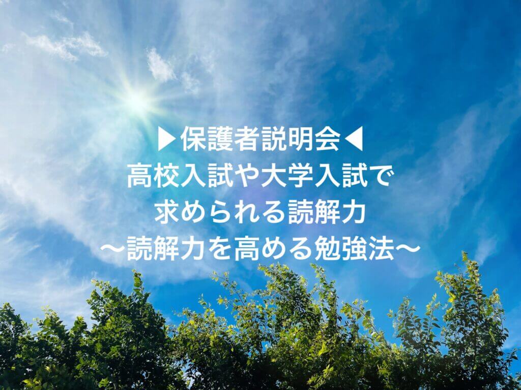 今回の説明会では、読解力をキーワードに入試や勉強に関してできるだけ詳しく説明していきます。