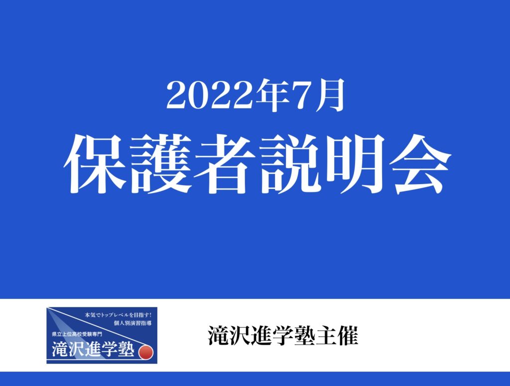 2022年7月16日(土)アイーナ8階会議室808で「高校入試や大学入試で求められる読解力〜読解力を高める勉強法」と題して保護者説明会を行いました。