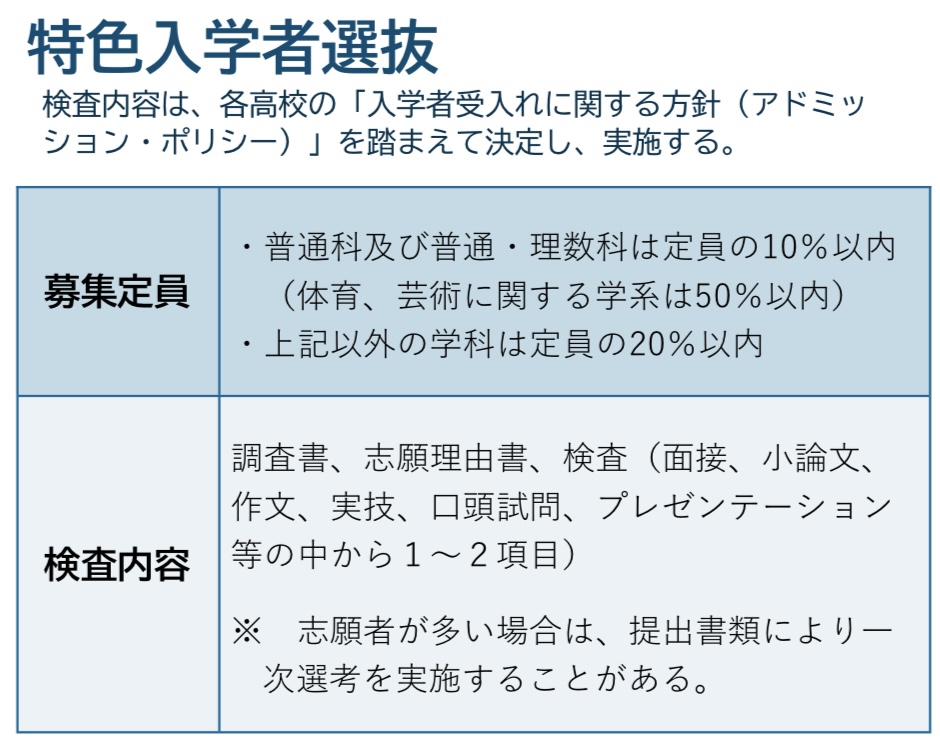 | 高校名 | 定員 | 特色入試の内容 |